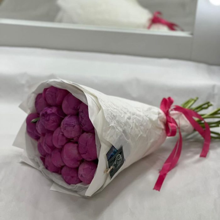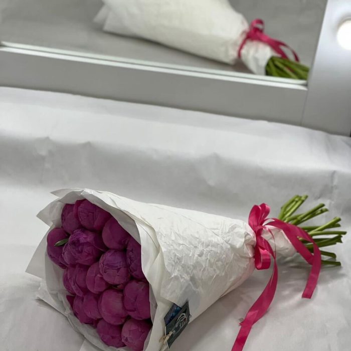 Упаковка – 2 шт.Лента атласная – 1 шт.пион ярко розовый премиум – 17 шт.
