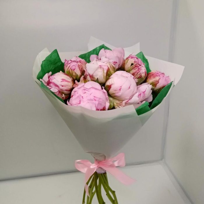 пионы сара бернар – 9 шт.Дизайнерская упаковка – 1 шт.