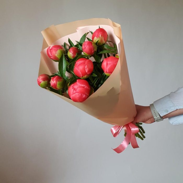 Упаковка – 1 шт.Лента атласная – 1 шт.Пион коралловый – 9 шт.