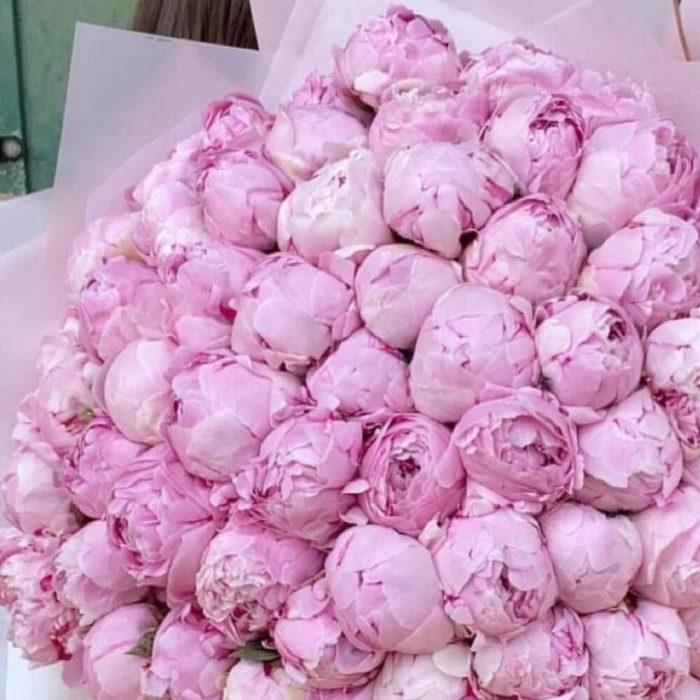 Пион розовый – 51 шт.Упаковка дизайнерская – 1 шт.Лента атласная – 2 шт.Открыточка с вашими пожеланиями – 1 шт.хорошее настроение – 100 шт.инструкция по уходу за цветами – 1 шт.коробка переноска – 1 шт.Кризал – 1 шт.