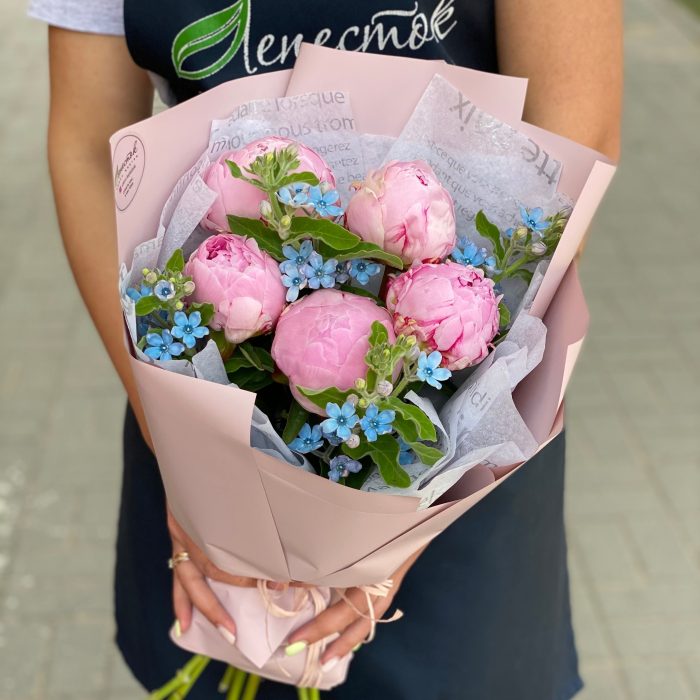 15 пионов с эвкалиптом