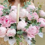 Корзина с пионами и эвкалиптом