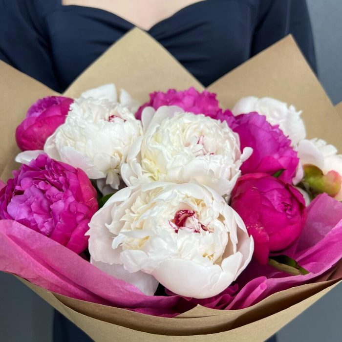 пионы микс крупные – 11 шт.Крафт упаковка – 2 шт.