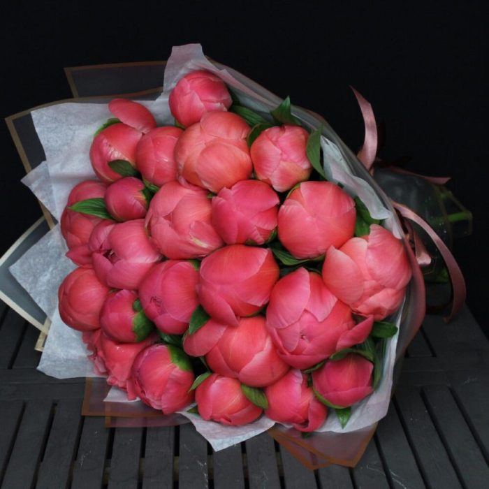 mono bouquet 132 из 23 пионов сорта coral charm