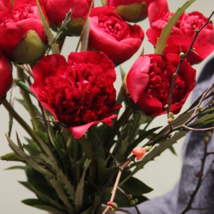 Пионы, гревиллия и ветви