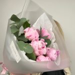 Эвкалипт – 3 шт.Пион Сара Бернар – 5 шт.Дизайнерская упаковка – 1 шт.