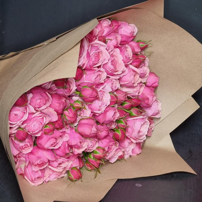 роза силва пинк пионовидная – 15 шт.Крафт упаковка – 1 шт.Лента атласная – 1 шт.