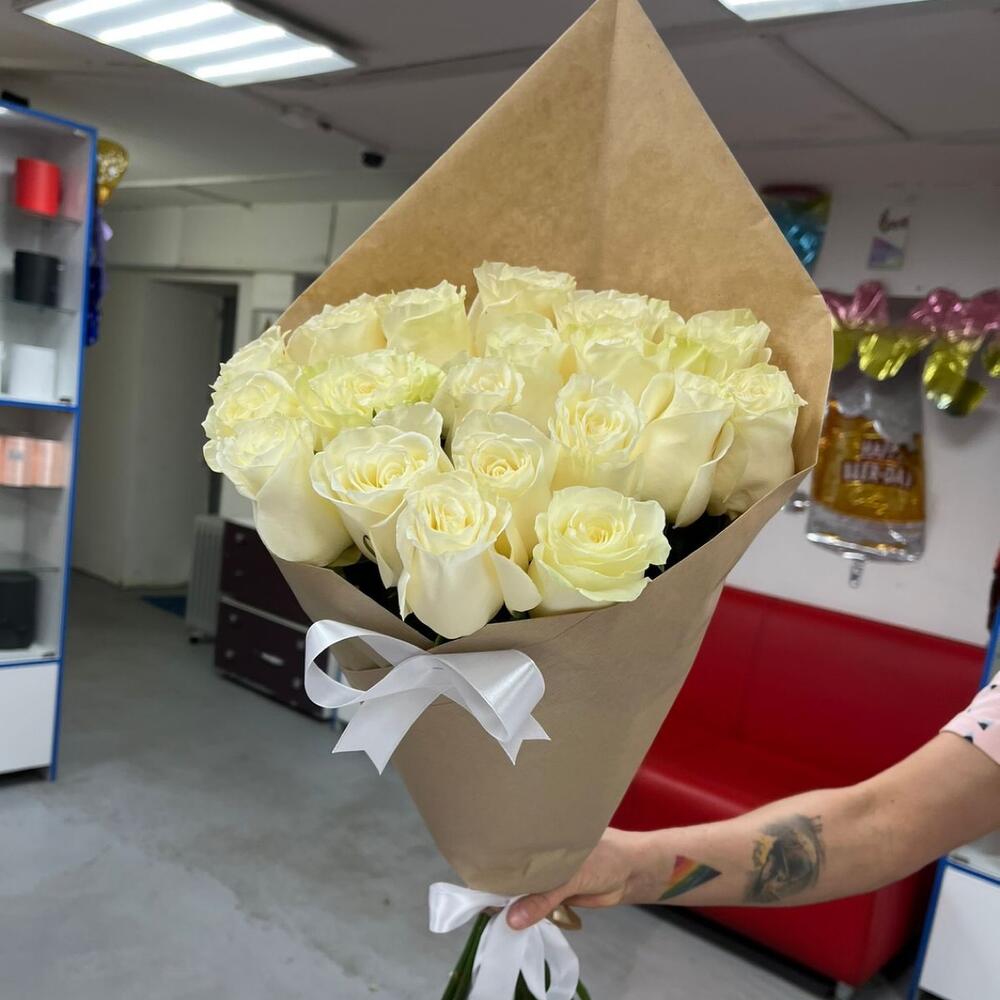 розы эквадор – 19 шт.Лента атласная – 1 шт.Крафт – 1 шт.