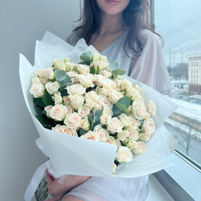 25 кремовых кустовых роз (букет N19)