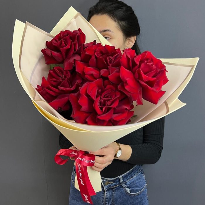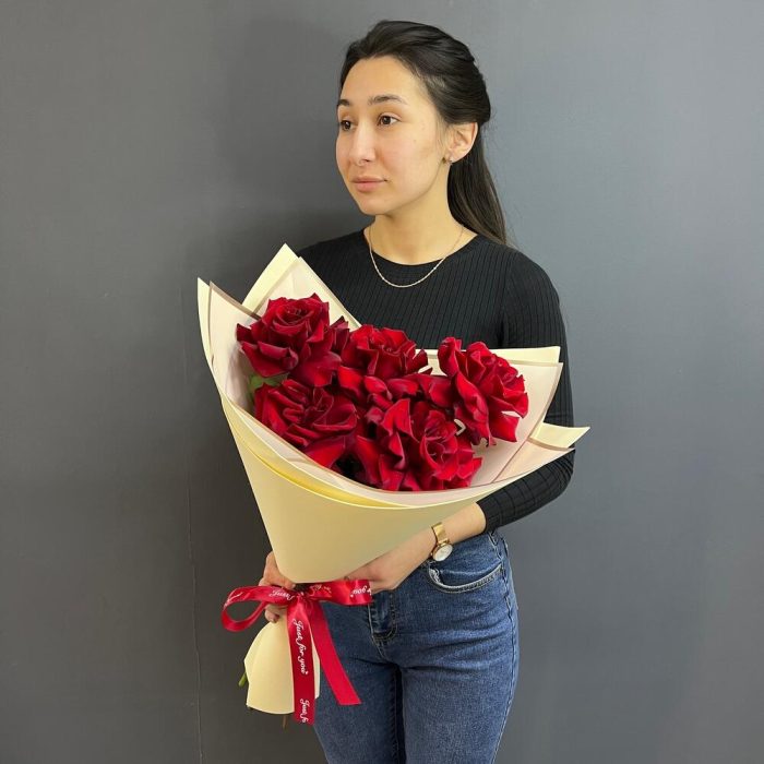 5 красных французских роз