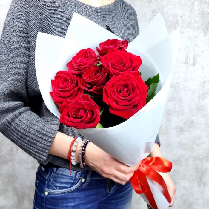 7 красных роз 60-70 см