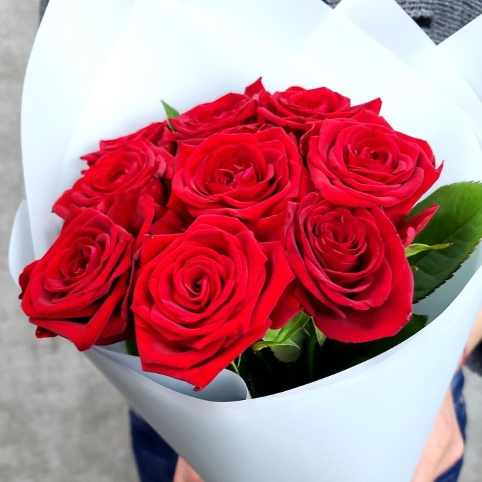 9 красных роз 60-70 см