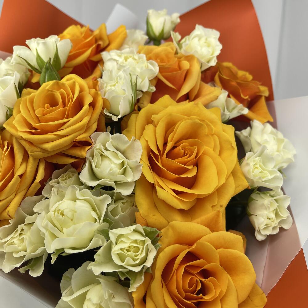 Букет из 15 кустовых и одноголовых Роз 50 см