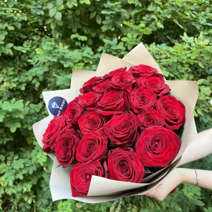 25 красных высоких роз