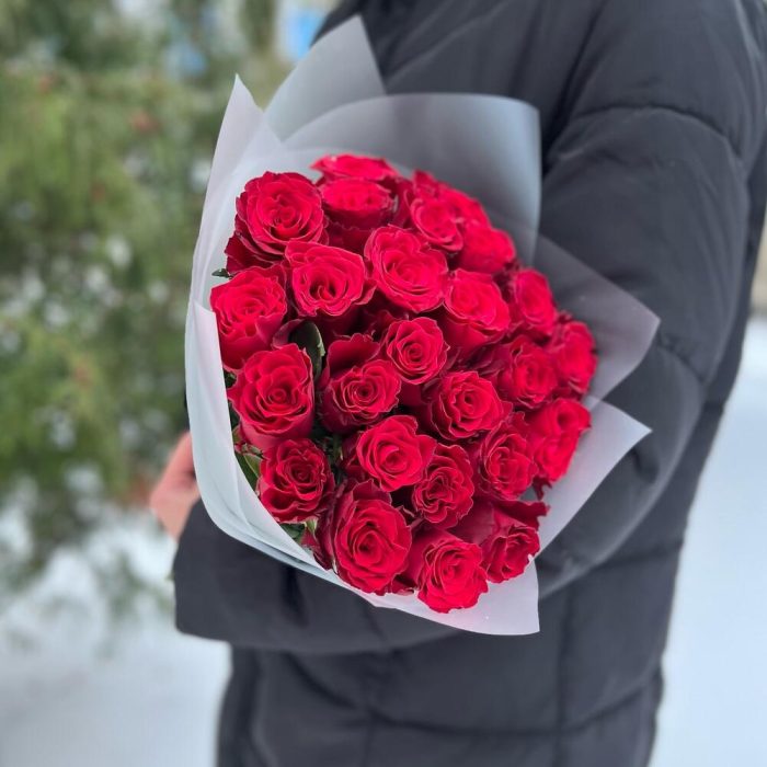 Роза красная 40 см – 25 шт.Пленка матовая – 2 шт.