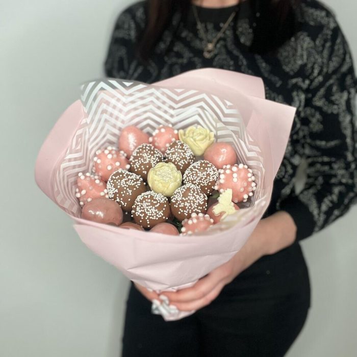 Упаковка – 1 шт.Клубника в шоколаде – 17 шт.Шоколадное сердце – 1 шт.посыпка кондитерская – 1 шт.шоколадная роза – 2 шт.шоколадная бабочка – 1 шт.