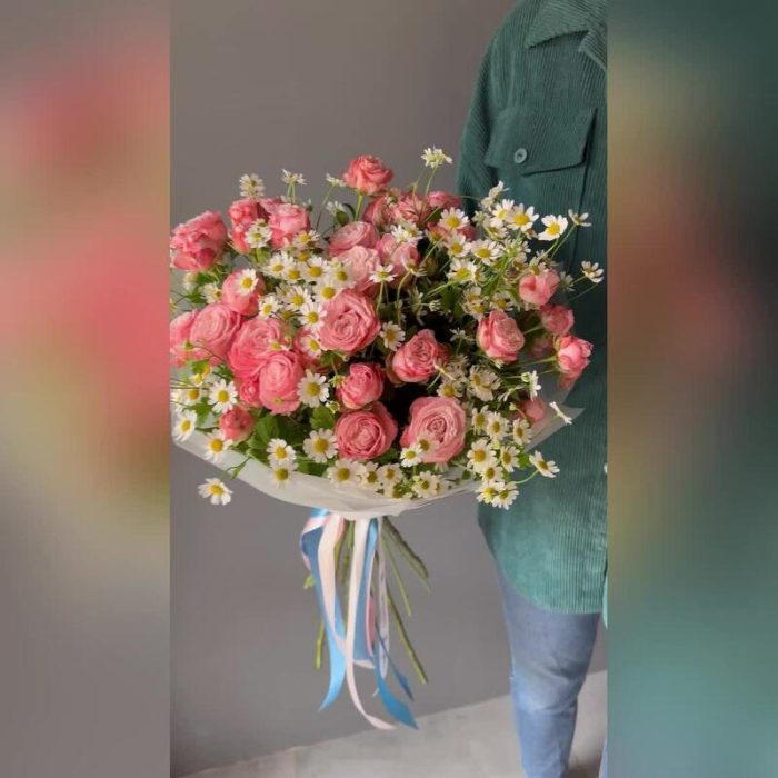 Букет из кустовой розы Бомбастик и Ромашки Матрикарии