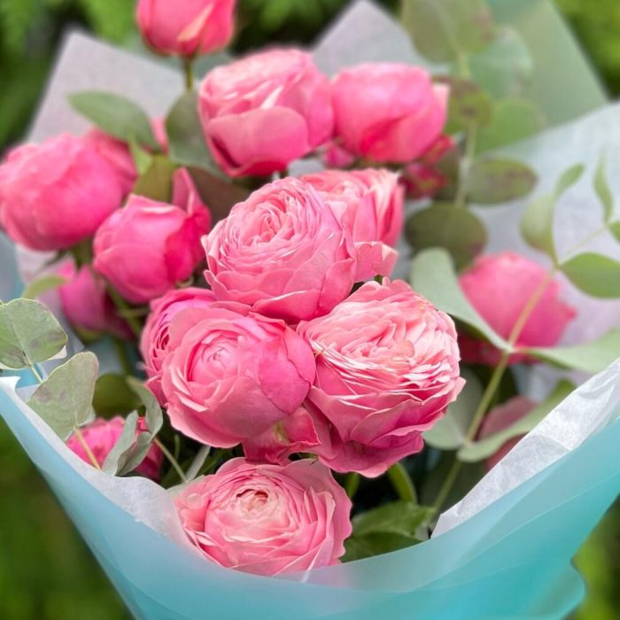 ЯГОДНОЕ МОРОЖЕНОЕ премиум букет с белой эустомой и пионовидными розами