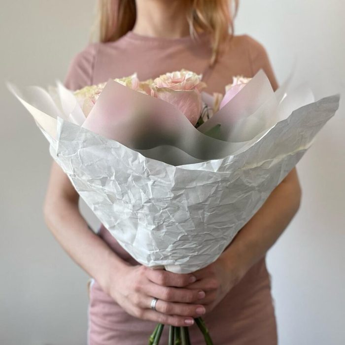 Букет из нежно-розовых роз Пинк Мондиаль 9шт