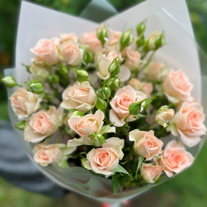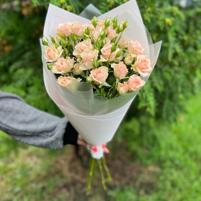 Роза кустовая – 5 шт.Пленка матовая – 1 шт.структурированны фаомиран – 2 шт.