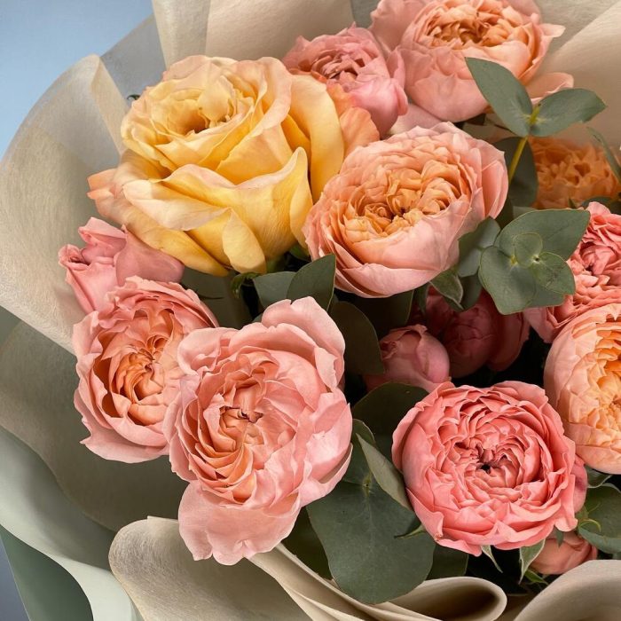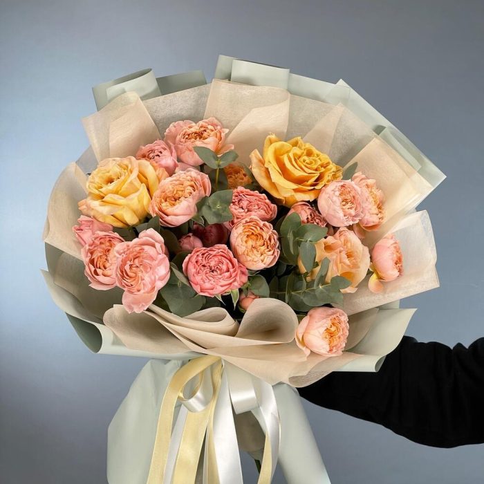 Букет из одноголовой и кустовой розы Персиковый смузи