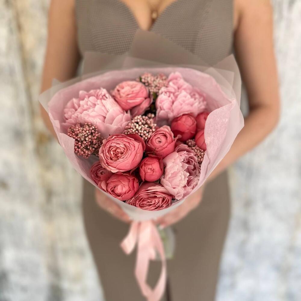 Букет из пионов и роз