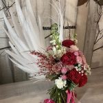 роза пионовидная «майра» – 8 шт.Роза кустовая пионовидная – 8 шт.Диантус – 6 шт.Джинстер – 3 шт.роза пионовидная «pink o’hara» – 7 шт.Озотамнус – 3 шт.Питтоспорум – 5 шт.аллиум неаполитанум – 3 шт.Писташ – 10 шт.Маттиола белая – 3 шт.
