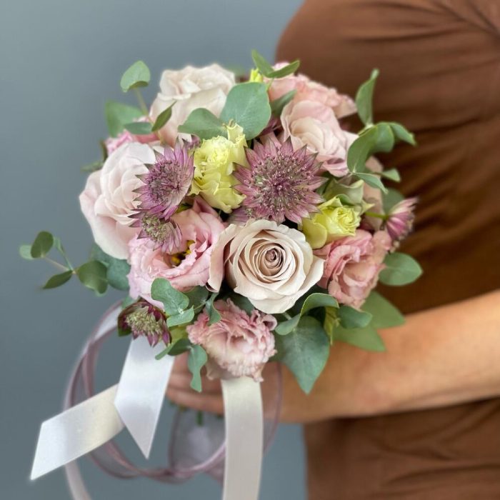 Букет невесты с нежной розой «Розовая пудра»