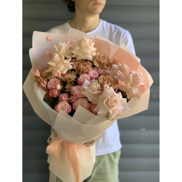 Гвоздики, Кустовые розы, Пионовидные розы, Розы
