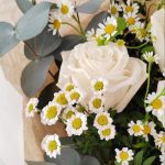 Букет с белой розой и ромашками
