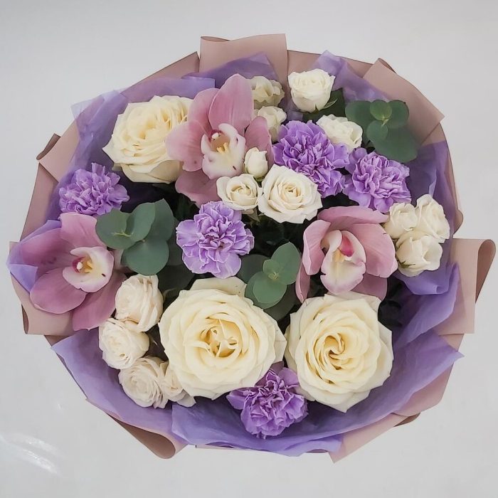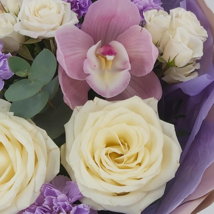 Букет с орхидеями, розами и лунными гвоздиками Марсель
