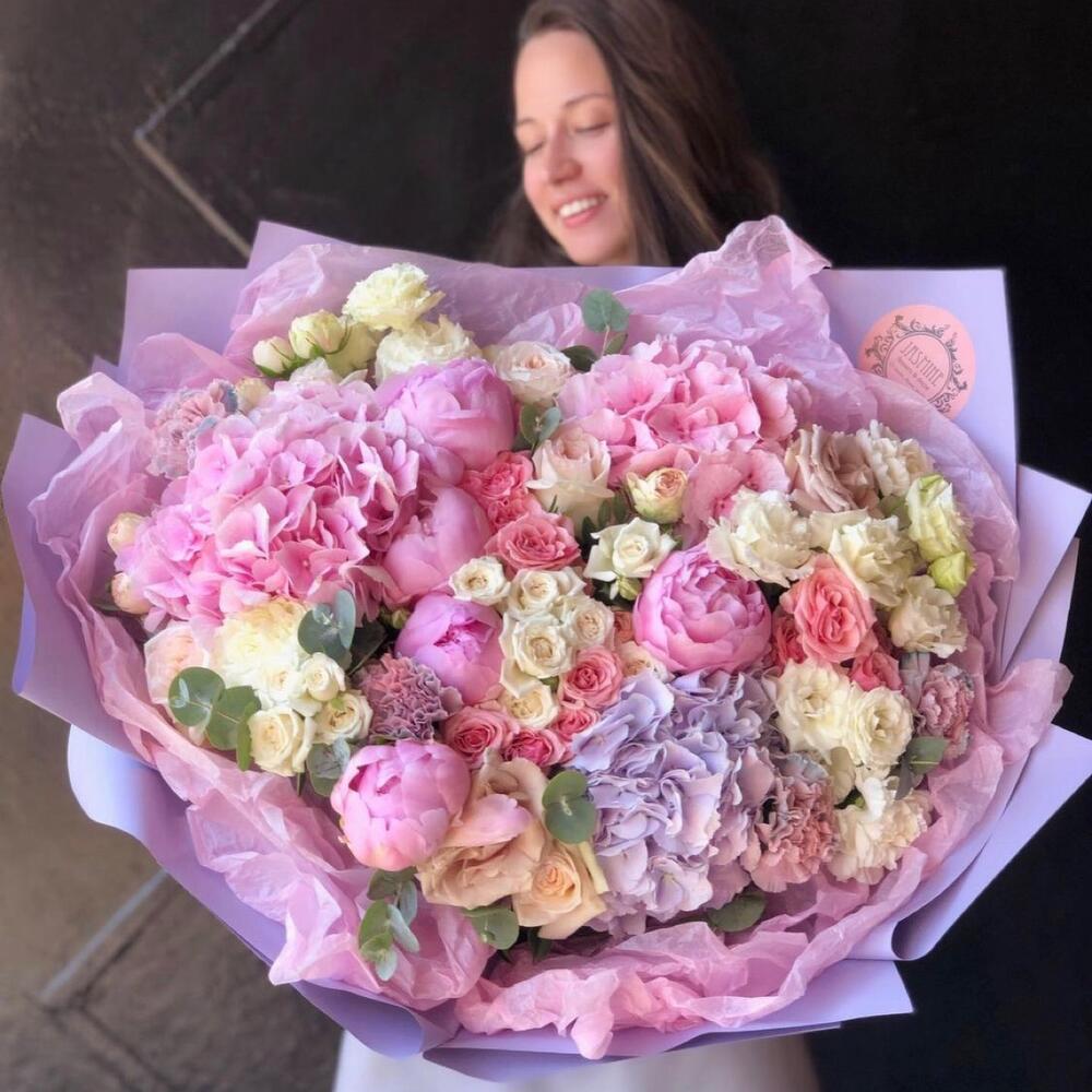 Букет с пионами и гортензиями