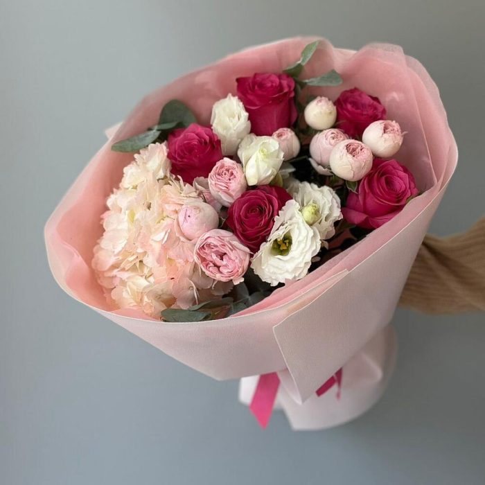 Кустовые розы, Лизиантусы, Розы, Сухоцвет