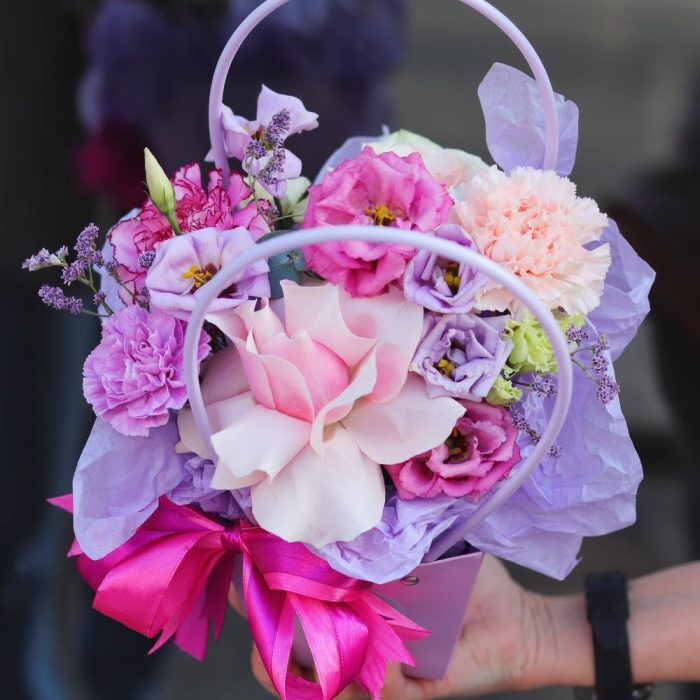 Нежная, чувственная и воздушная композиция, выполненная из роз, лизиантуса и диантусов.Такая композиция точно понравится яркой и энергичной получательнице, и будет долго радовать её.К композиции прилагается открытка с вашими пожеланиями и приятный комплимент от нашего магазина – шоколадка. Мы также будем рады отправить вместе с композицией конфеты, шоколад ручной работы или б/а вино по вашим пожеланиям, просто напишите нам в личные сообщения. Заказывая нашу композицию, Вы всегда получите исключительный сервис и заботу о клиенте