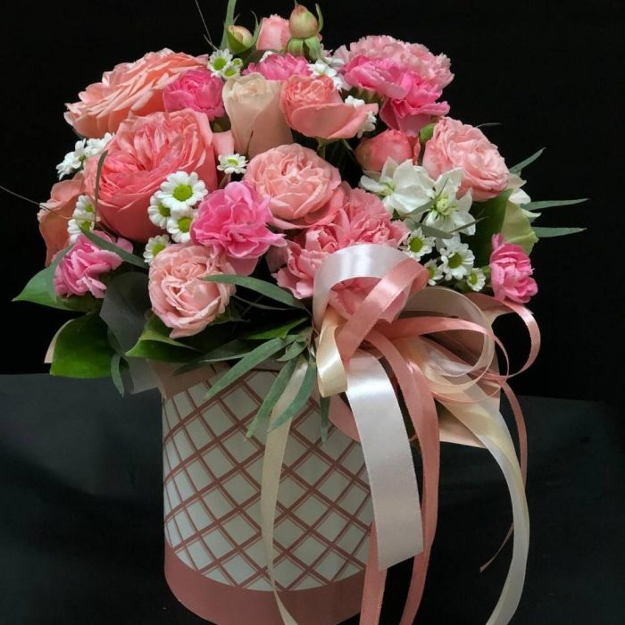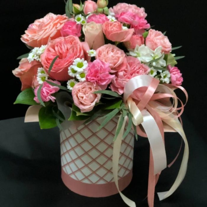 Цветы в коробке Розовый Микс