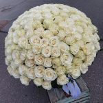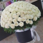 Роза Эквадор – 201 шт.Лента атласная – 1 шт.Коробка шляпная – 1 шт.Фисташка – 10 шт.Оазис флористический – 10 шт.