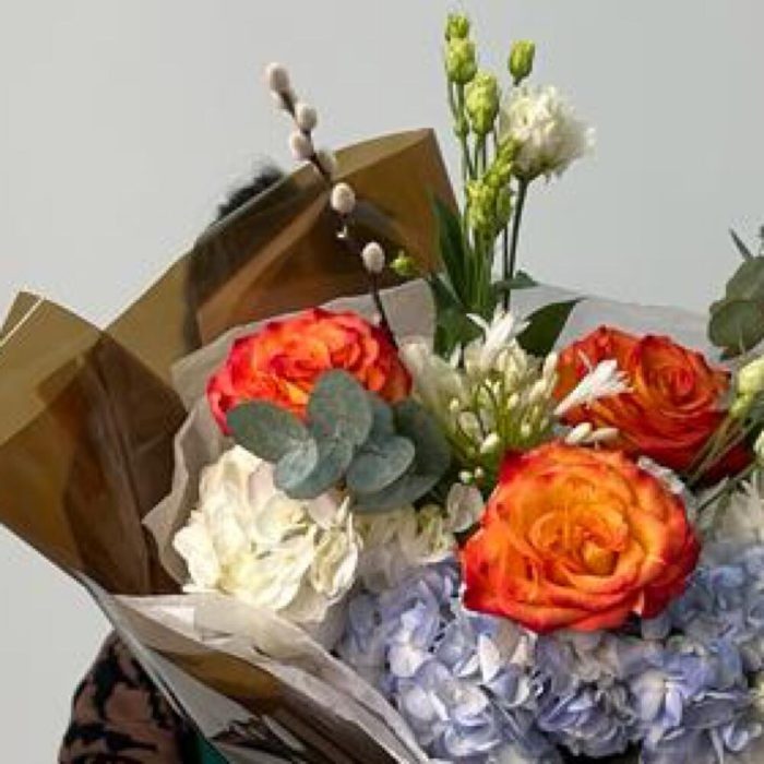 “Эвкалиптическая роскошь” гортензия и пионовидная кустовая роза