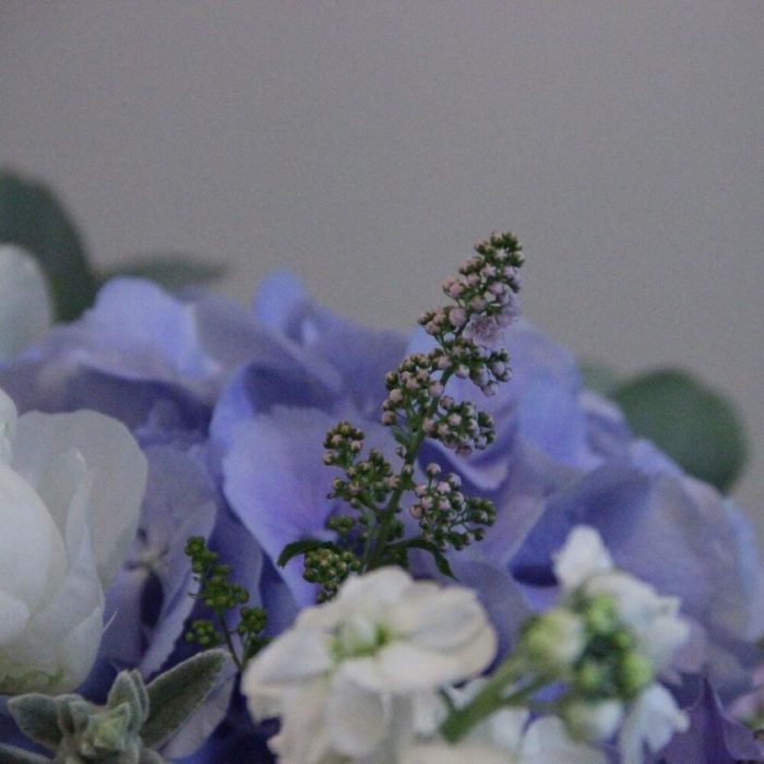 Гортензия – 4 шт.Пион – 7 шт.Роза пионовидная – 9 шт.Маттиола – 15 шт.Клематис – 5 шт.Твидия – 5 шт.Стахис – 5 шт.Травы – 5 шт.Эвкалипт – 15 шт.Кашпо – 1 шт.