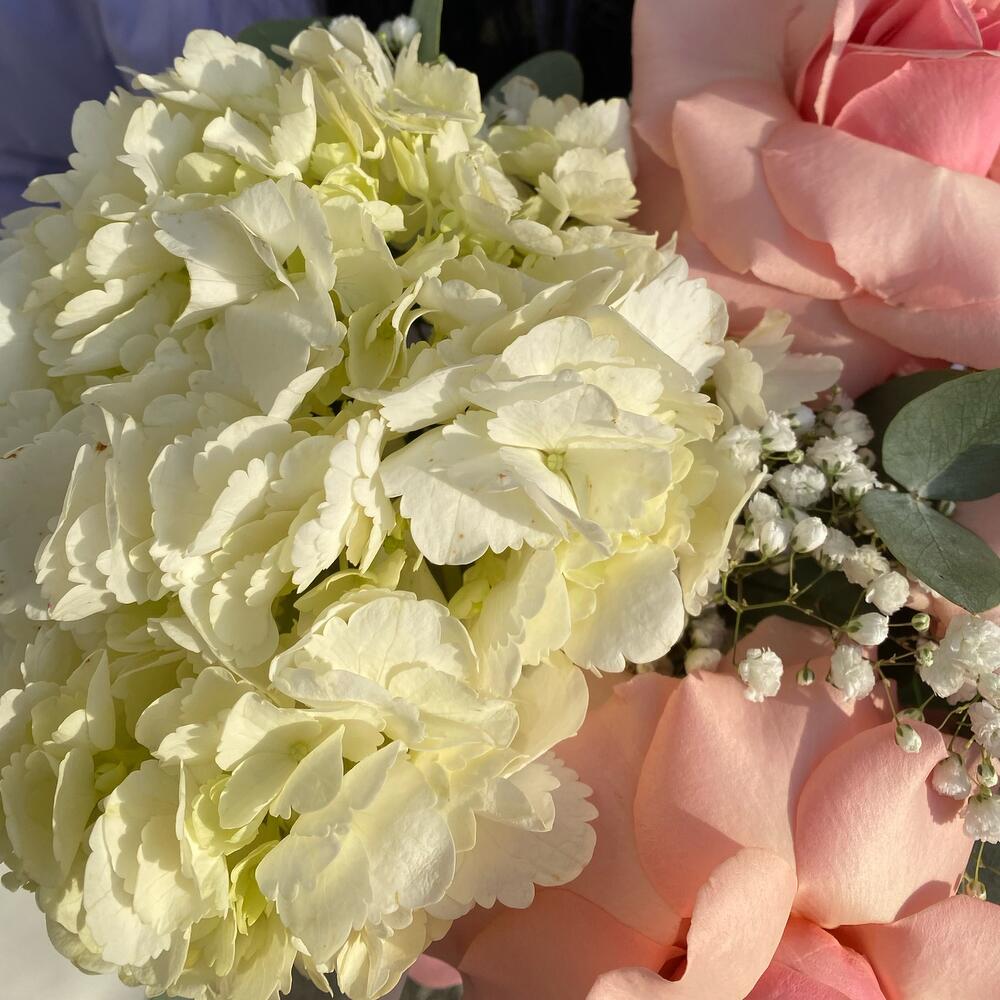 “Эвкалиптическая роскошь” гортензия и пионовидная кустовая роза