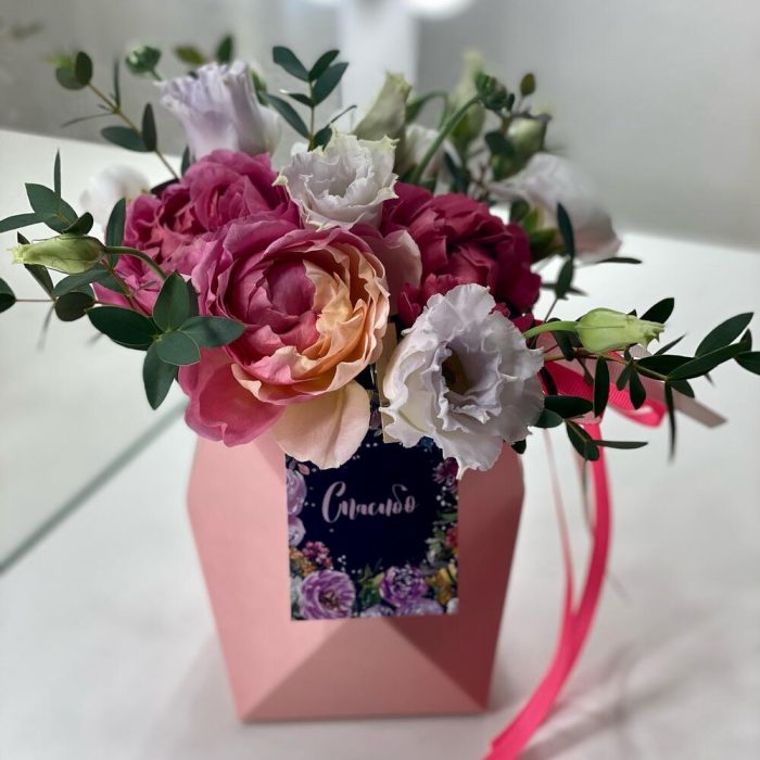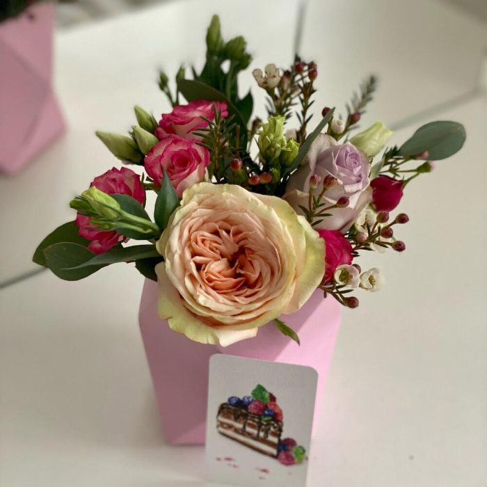 “Атлас☁️” – цветочная композиция с зефиром в деревянном ящике