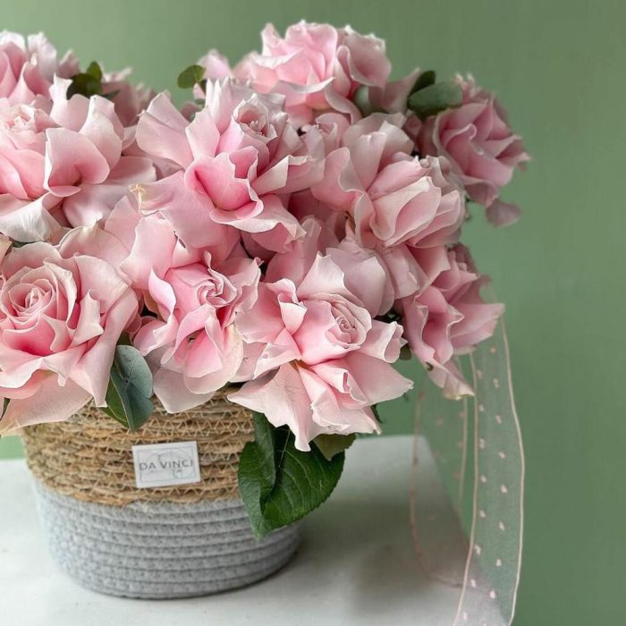 Эвкалипт – 2 шт. Кашпо – 1 шт. Роза голландская 60 см – 23 шт.