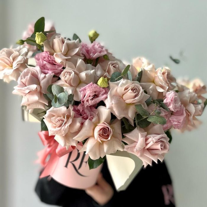Альстромерии, Гвоздики, Кустовые розы, Лизиантусы, Розы, Хризантемы