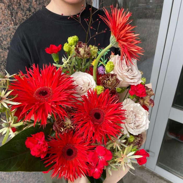 Категорий: Гвоздики, Герберы, Кустовые розы, Лизиантусы, Пионовидные розы, Розы