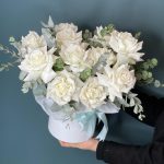Букет из белых роз в шляпной коробке "Светлые чувства"