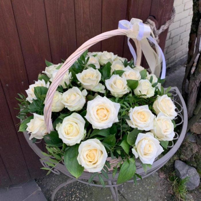 Корзина с белыми розами «Аваланш»
