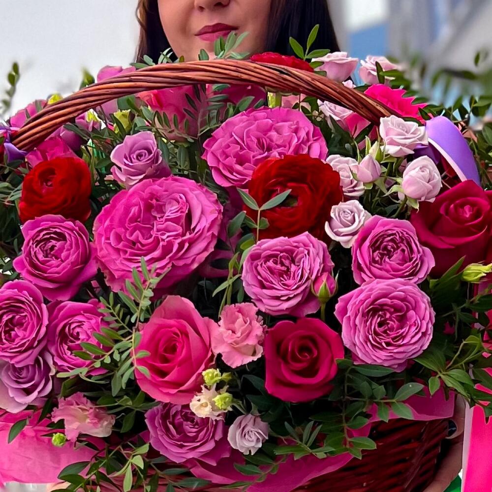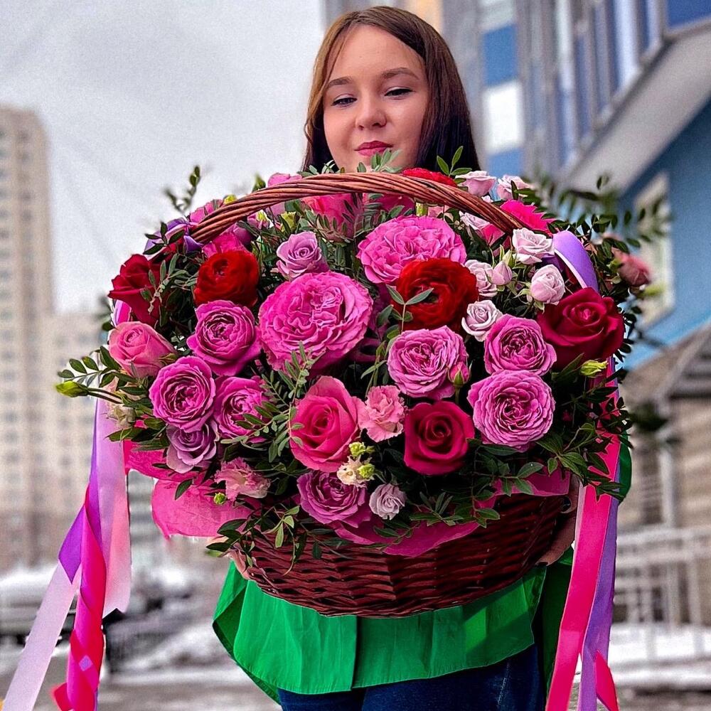 Метки: от 5000 руб, цветы в корзине