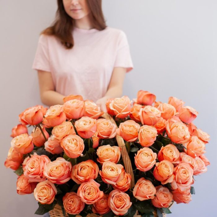 Метки: 101 роза, от 5000 руб, цветы в корзине