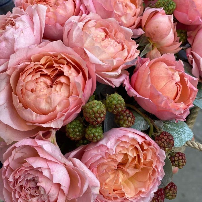 Кустовая роза Жизель с эвкалиптом