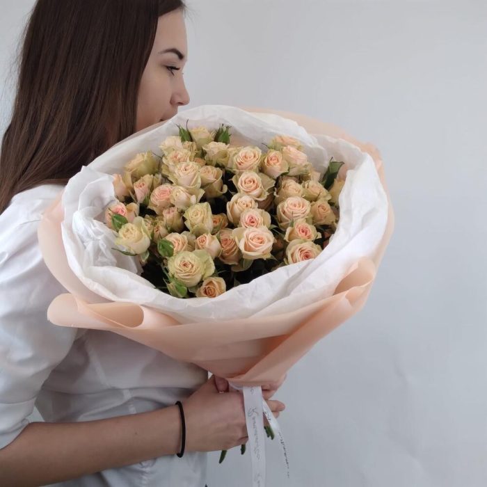 Кустовая роза – 9 шт.Тишью – 3 шт.Упаковка дизайнерская – 1 шт.