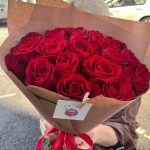 Лента атласная красная – 1 шт.бечевка – 1 шт.Упаковка крафт – 1 шт.роза кения красная 40 см – 25 шт.